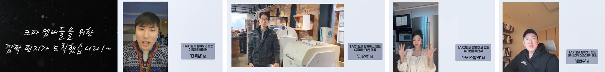 크파와 함께하고 있는 고객분들의 깜짝 영상편지!!! 바쁘신 와중에도 멤버분들을 위해 흔쾌히 편지를 남겨주셨습니다 ㅠㅠ