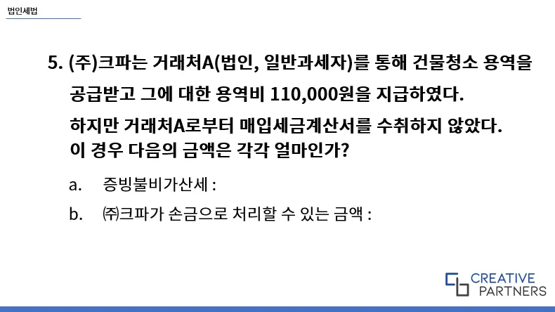 고객이 물어보는 경우에 바로 답을 할 수 있도록 디테일한 문제를 많이 내셨다고 하는데, 특히 회계 프로그램에서 자동으로 값이 나오다 보니 평소에는 생각해보지 못했던 부분들을 문제로 함께 출제해주셨다. 미팅을 하면서 고객이 물어보는데 회계 프로그램을 킬 수는 없지 않냐는 명언
