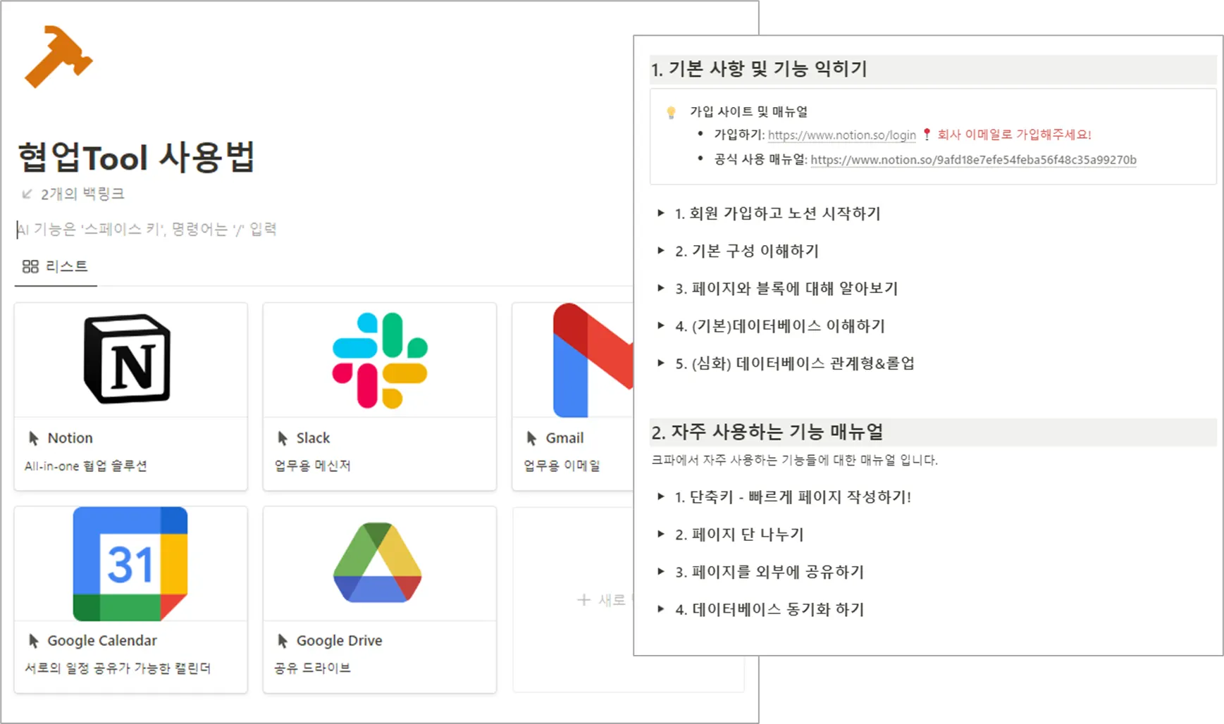 거의 모든 업무를 Notion, Slack을 활용하여 진행하고 있는데 기본적인 기능 외에는 사용하기 어려워 한다