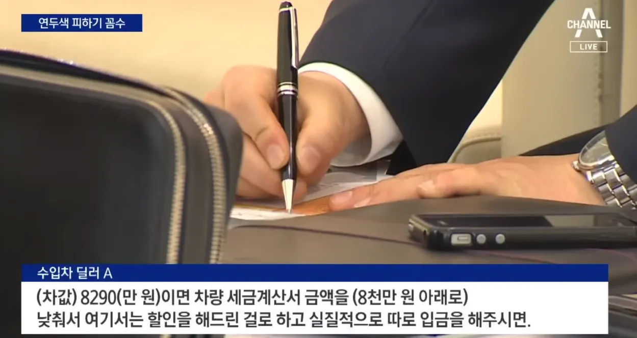 할인 금액을 포함한 출고 가격이 8천만원 미만이라면, 법인 차량 구매 시 연두색 번호판을 부착하지 않아도 됩니다. 이 점을 고려하여 차량 임차 계약 등 시 “출고가액”을 8천만원 미만으로 하여 출고하는 경우(즉, 다운계약서 작성 사례)가 상당수 발생하고 있는 것으로 확인 됩니다.
