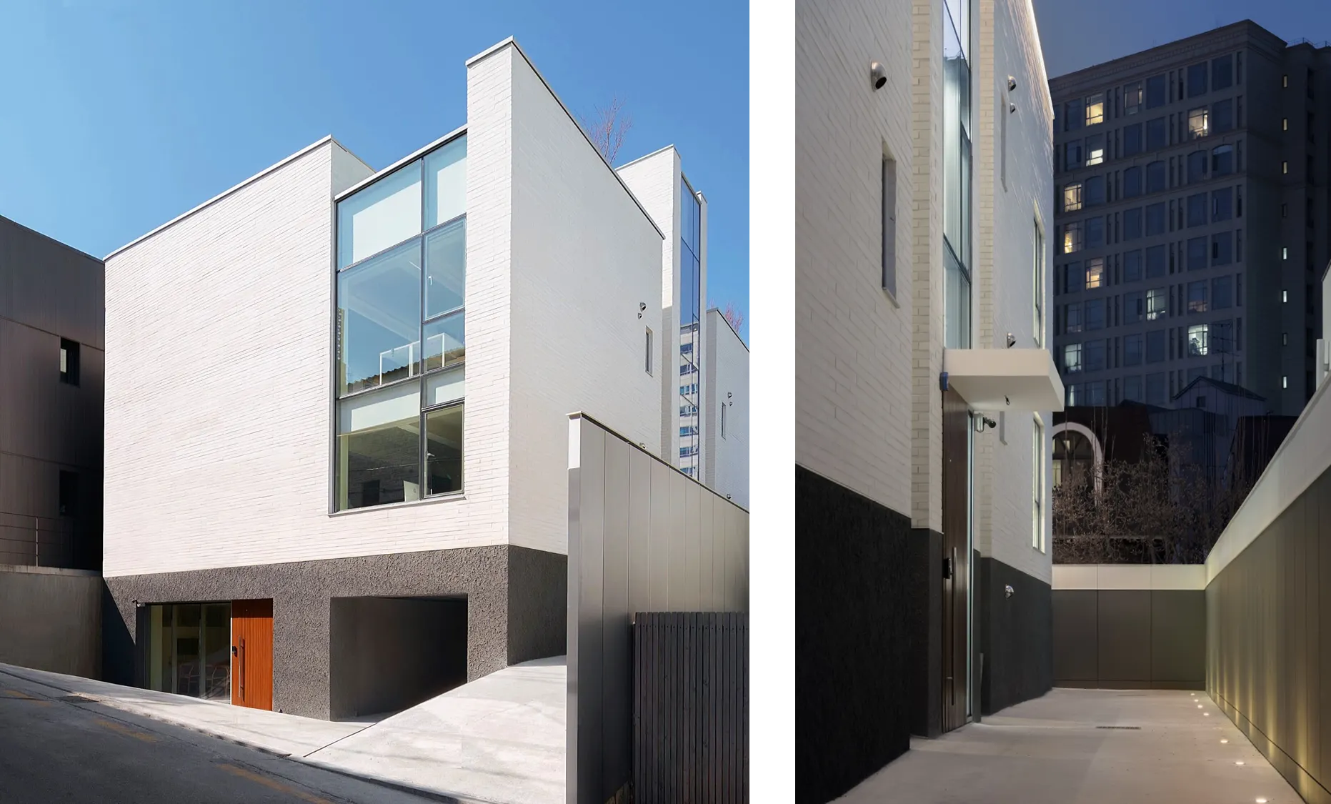 흰색 벽돌로 화사하게 외관을 꾸몄고, 지상층은 투톤으로 칼라를 입혀 외관을 차별화하였습니다. 총 3개층으로 구성되어 있고, 1층 라운지 2-3층은 사무실로 사용합니다. 차를 가지고 오신 분들은 사옥 앞에 주차를 할 수 있답니다.